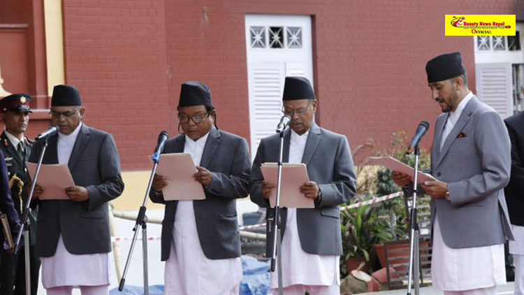 आइतबार बसेको मन्त्री परिषदको बैठकले राष्ट्रपति रामचन्द्र पौडेल समक्ष सिफारिस गरेका पाँच जना मध्य चार जनालाई आफ्नै निवासमा आज राष्ट्रपति रामचन्द्र पौडेलले पद तथा गोपनीयताको शपथ लिएका छन् । पाँच जना मध्य स्वास्थ्य मन्त्रीमा सिफारिस भएकी संगीत कौशल मिश्राको नियुक्त भने खारेज भएको छ । उनी बिरुद्ध अख्तियार दुरुपयोग अनुसन्धान केन्द्रमा भ्रष्टाचरका मुद्दा भएका कारण मिश्राको नाम मन्त्रीबाट फिर्ता गरिएको छ ।