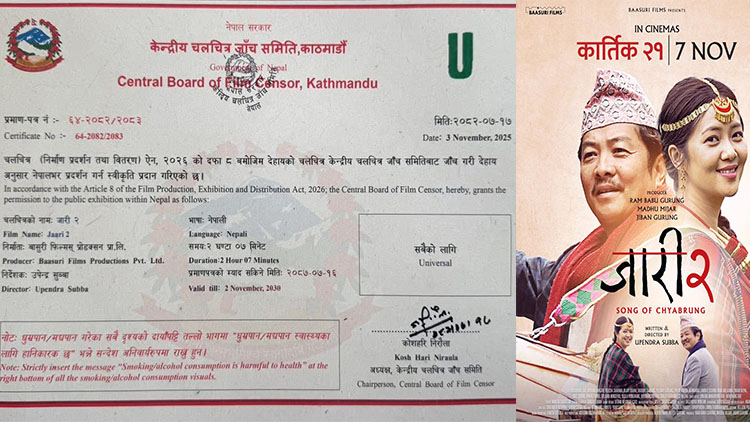 कार्तिक २१ गते भोली शुक्रबारबाट विश्वव्यापी प्रदर्शनमा आउने चलचित्र ‘जारी २ : सङ अफ च्याब्रुङ’ले नेपालमा खल्तीमा दर्ता भएका हलबाट २५८ शोज रनभएका हलबाट ४० गरी करिब तीन सय सोज पाएको यसको वितरण पक्षले जनाएको छ । यस्तै यो चलचित्र शुक्रबारबाटै १९२ स्थानमा पनि रिलिज हुने भएको छ । यो चलचित्रले सेन्सर बोर्डबाट सबैले हेर्न पाउने युनिभर्सल प्रमाणपत्र पनि पाएको छ ।