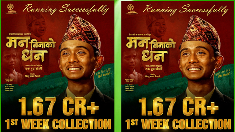 बालगायक अशोक दर्जी अभिनित चलचित्र ‘मन बिनाको धन’ले यति बेला नेपालभरिका राम्रो ब्यापार गरिरहेको छ । यो चलचित्र नेपालका हलमा दोस्रो हप्तामा हाउसफुलका साथ प्रदर्शन भईरहेको छ ।
