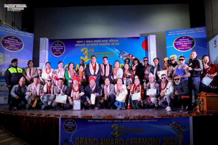 तेस्रो राष्ट्रिय आदिवासी संगीत एवम् चलचित्र अवार्ड २०८२ चलचित्र र गीत संगीतको विभिन्न ३२ विधामा अवार्ड प्रदान गर्दै काठमाडौँको चावहिल स्थित चलचित्र विकास बोर्डको हलमा सम्पन्न भएको छ ।